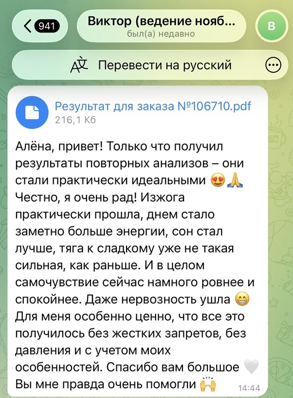 Следующим шагом разрабатываю для вас план питания и далее сопровождаю вас в его внедрении, корректируя его по мере достижения первых результатов.